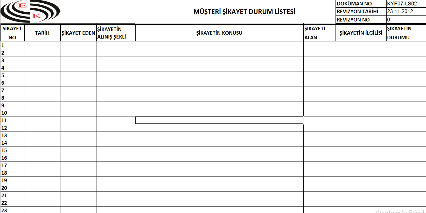 ISO 10002 Formlar